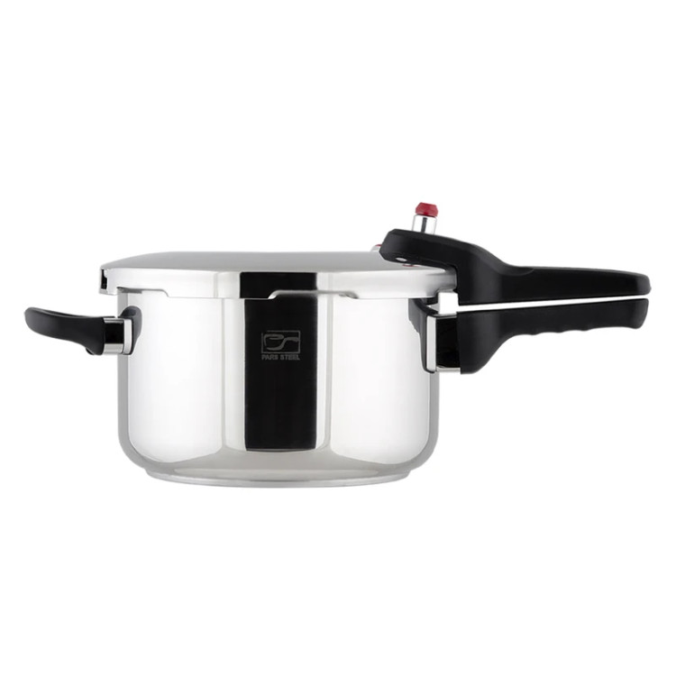 زودپز تک دسته درب فلزی کف سه لایه پارس استیل با سبد بخار درب پیرکس